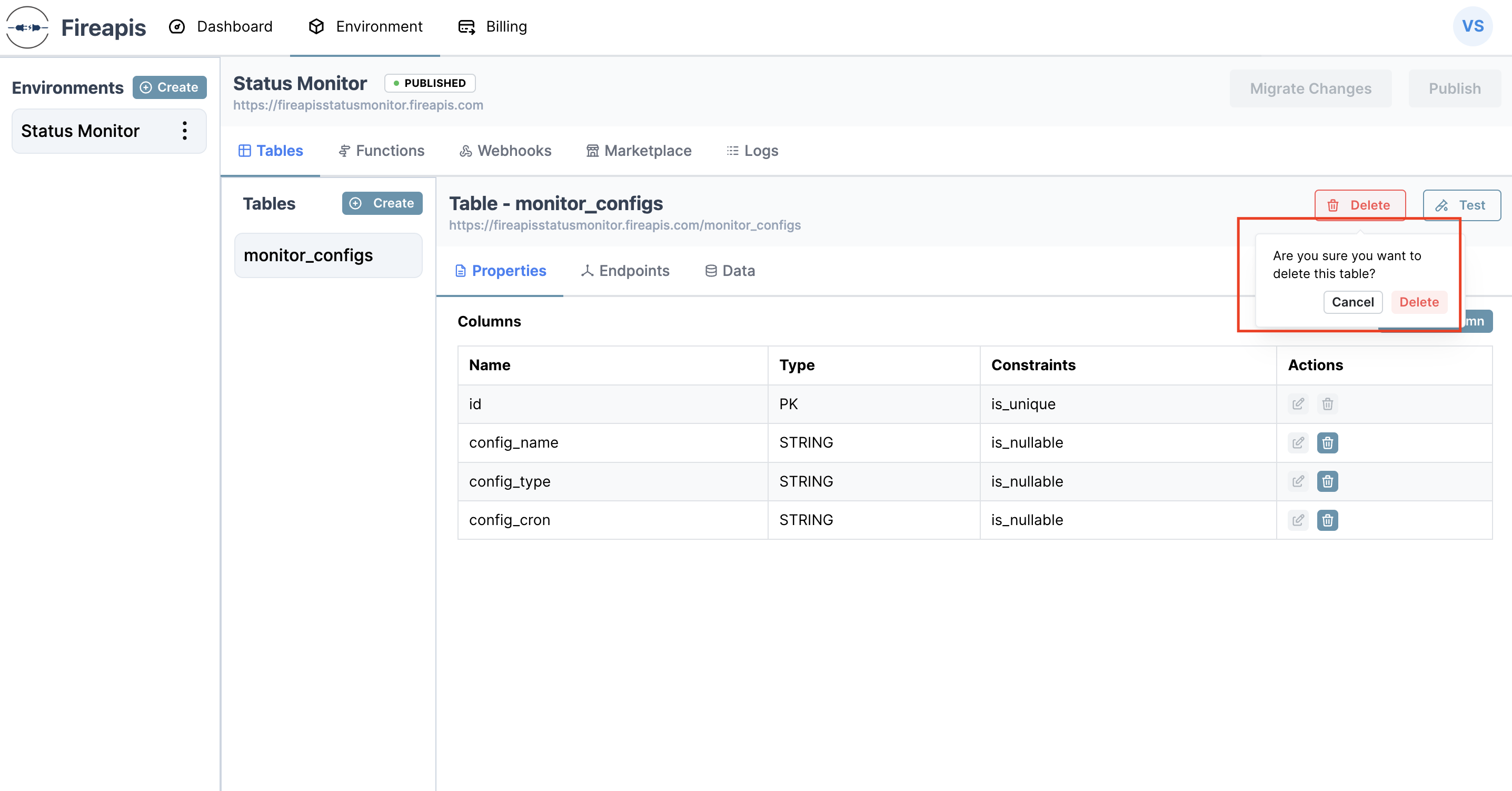 If you need a backup of your table data, please contact chat support or email *<vasanth@fireapis.com>*.